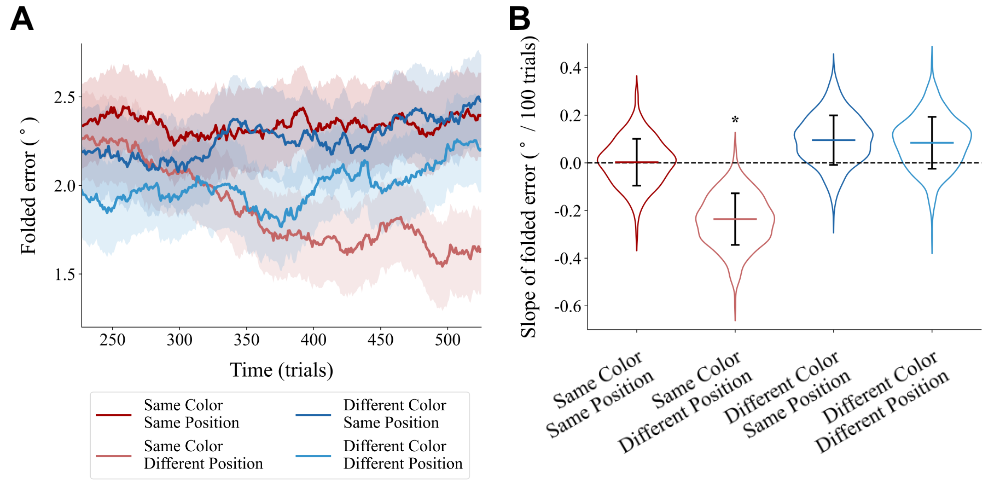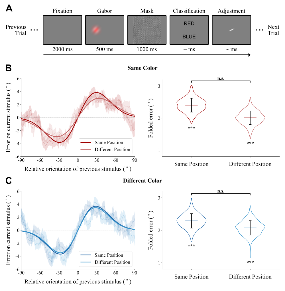 In this study, with two experiments and a reanalysis of a published dataset, we found a narrowing trend in the spatial tuning window of serial dependence, revealed by a decrease in serial dependence over time between stimuli with different positions but not between stimuli with the same position. We also found a modulation effect of color that such a trend was only found between stimuli with the same color but not between stimuli with different colors. These results provide evidence in support of the adaptive nature of serial dependence and offer hints for understanding the mechanism that controls the temporal trend of serial dependence.